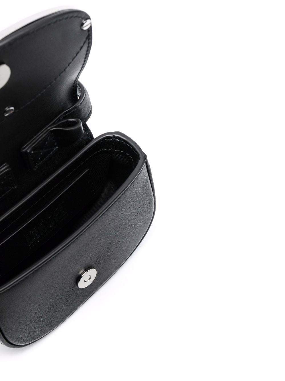 black calf leather logo plaque single top handle adjustable detachable shoulder strap foldover top with magnetic fastening main compartment internal logo patch 1DR XS leather mini bag